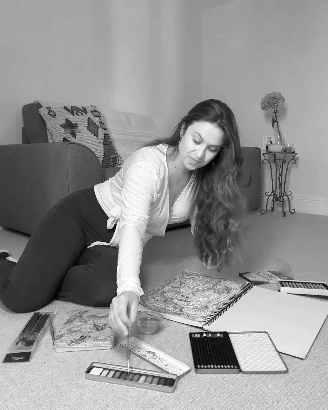 Her artistic journey began with portraiture, later evolving into botanical studies during university. Over time, Daisy’s work has merged these subjects, using botanicals as symbolic representations of human experiences and emotions. Her interest in the connection between art and personal healing deepened during university, where she completed a workshop in Mindfulness-Based Art Therapy.