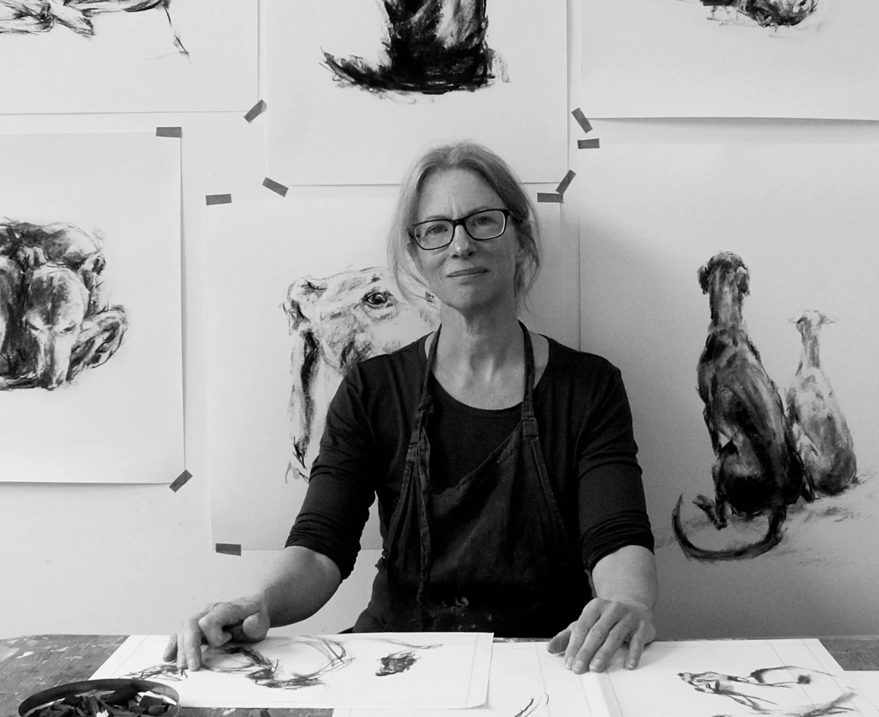 Justine Osborne is an artist who has been drawing dogs for over 20 years. She is known for her expressive dog artwork, capturing the movement, character and individuality of her subjects through lively, intuitive mark-making. She has a Fine Art background and is a Central St.Martins graduate.
