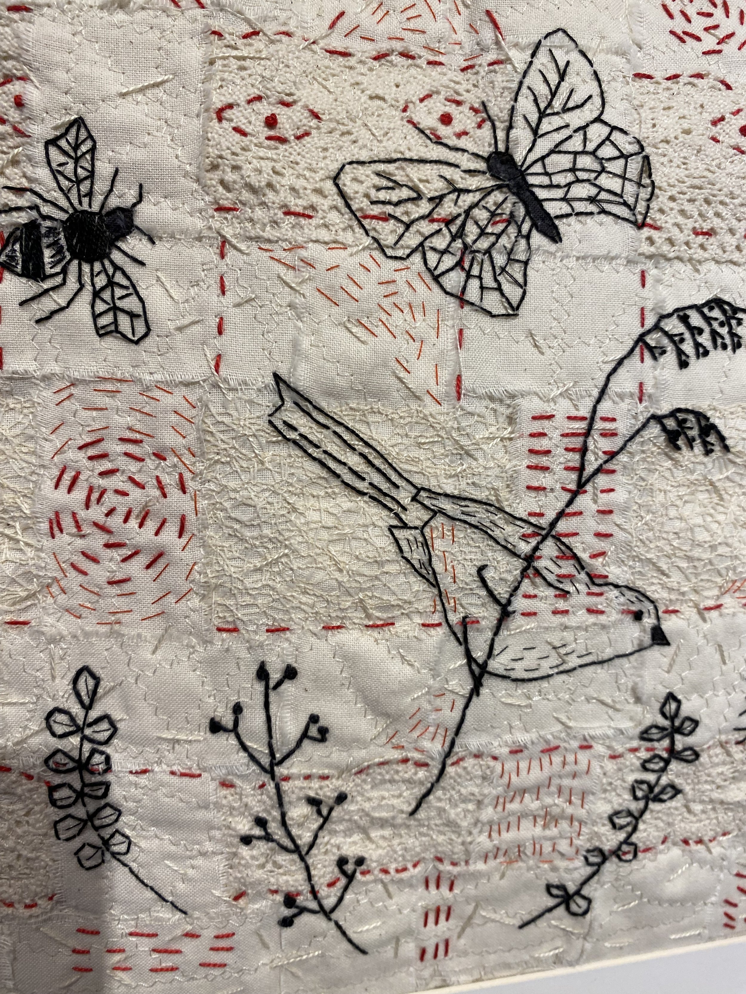 Sue works as a freelance mixed media and textile artist, tutor and speaker, passionately delivering workshops, commissions and conservation work, community projects, exhibitions, as well as private workshops, classes and 1:1 tuition for individuals and groups of children and adults.