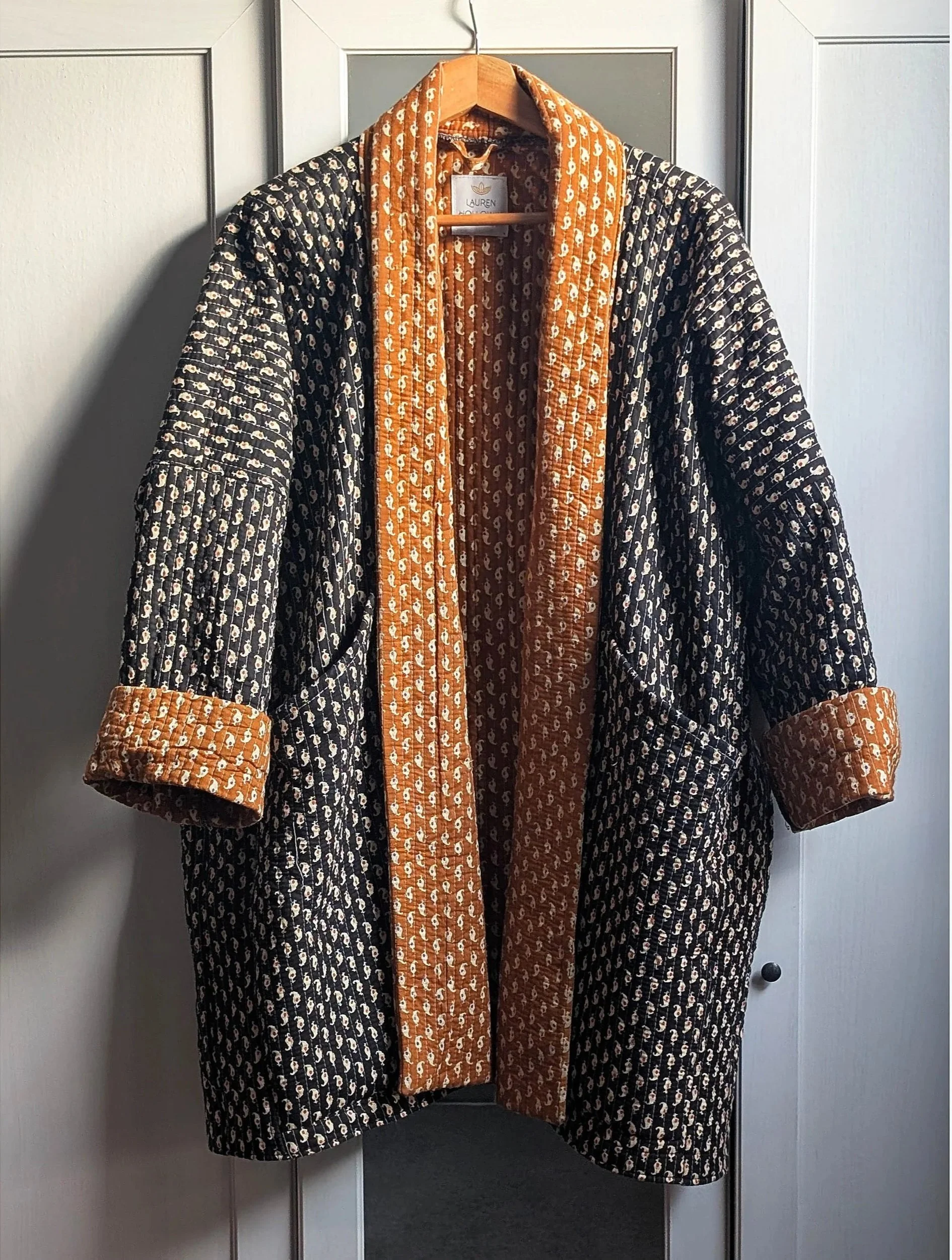 Inspired by traditional Japanese clothing, the Pekka is an oversized mid-season jacket with wide armholes and a simplified lining. It’s slightly cropped sleeves and generously sized pockets make it a stylish choice for layering.