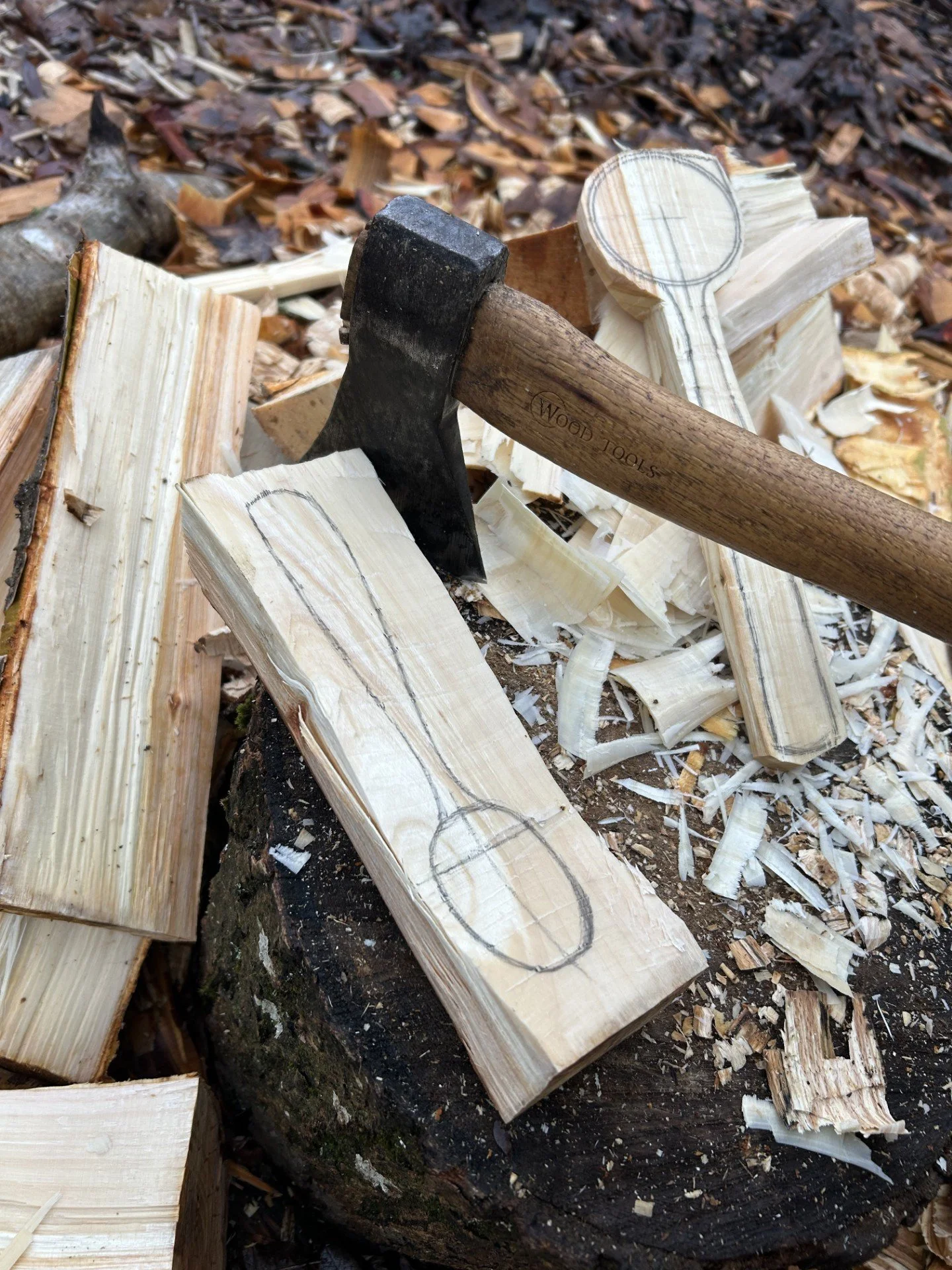 You will work on your axed-out spoon blanks with the two knives and talk about drying methods and the science of an ergonomic spoon with a crank. Tamsin will demo on axing a crank, encouraging you to then try it out yourself.