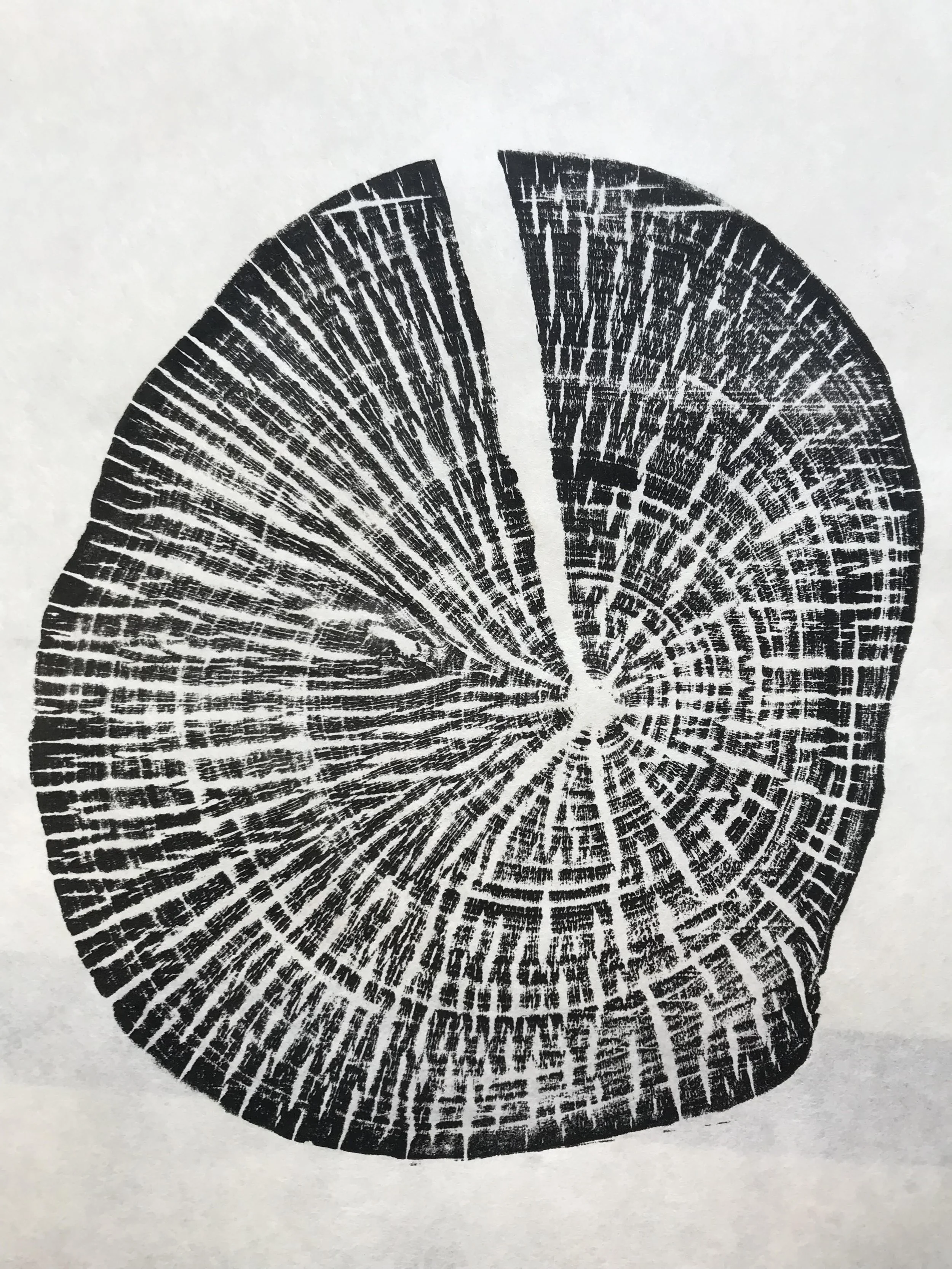 Tree rings make fantastic natural printing blocks, as they can be easily worked to reveal the concentric rings formed by the tree’s yearly growth. Using locally sourced woods such as Ash, Beech, Oak, Hazel and Hawthorn, we’ll be taking a close up look at the different grains of native tree species, and learning how to prepare them into relief blocks - a process of scorching and wire brushing the across the grain. We’ll then practice inking up the blocks and burnishing by hand to transfer the ring pattern onto paper. With opportunities to experiment with colour, layering and composition, you’ll leave the workshop with a series of card size prints, or a larger feature piece, and a closer knowledge of the incredible natural forms which surround us in the local landscape.